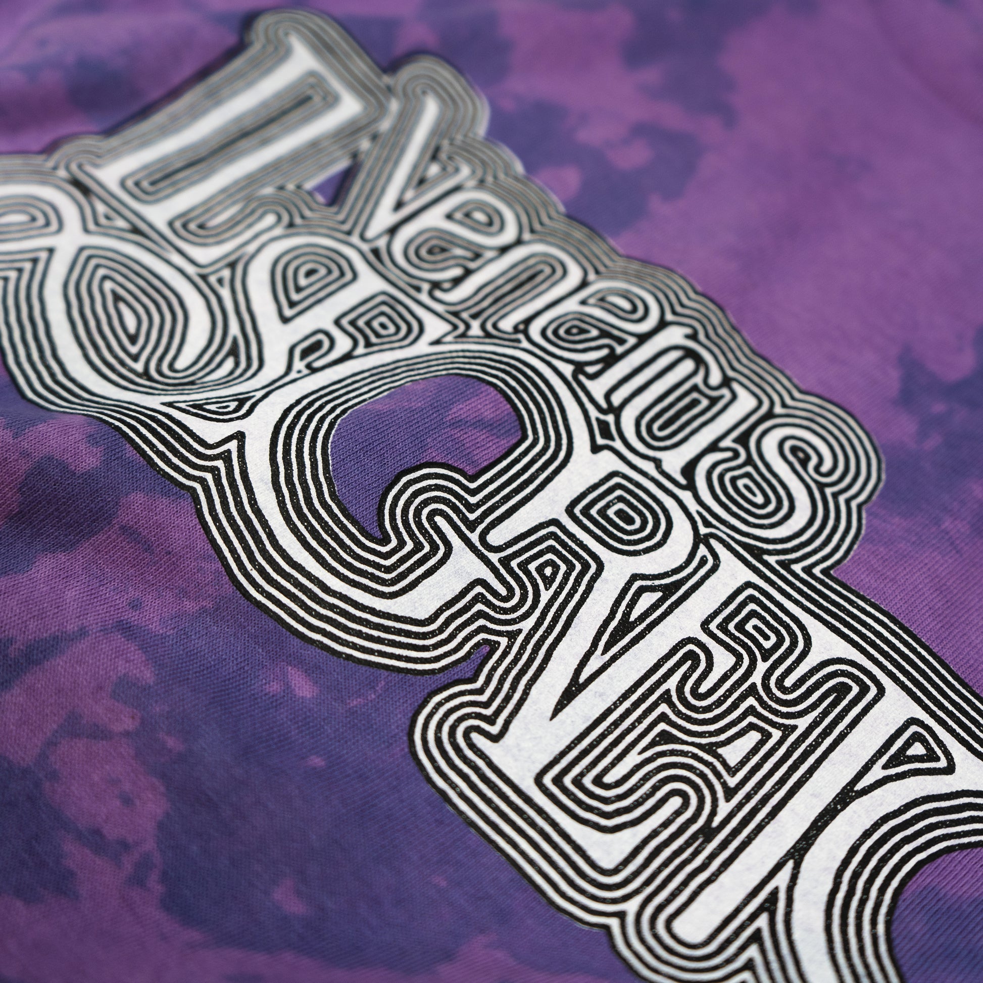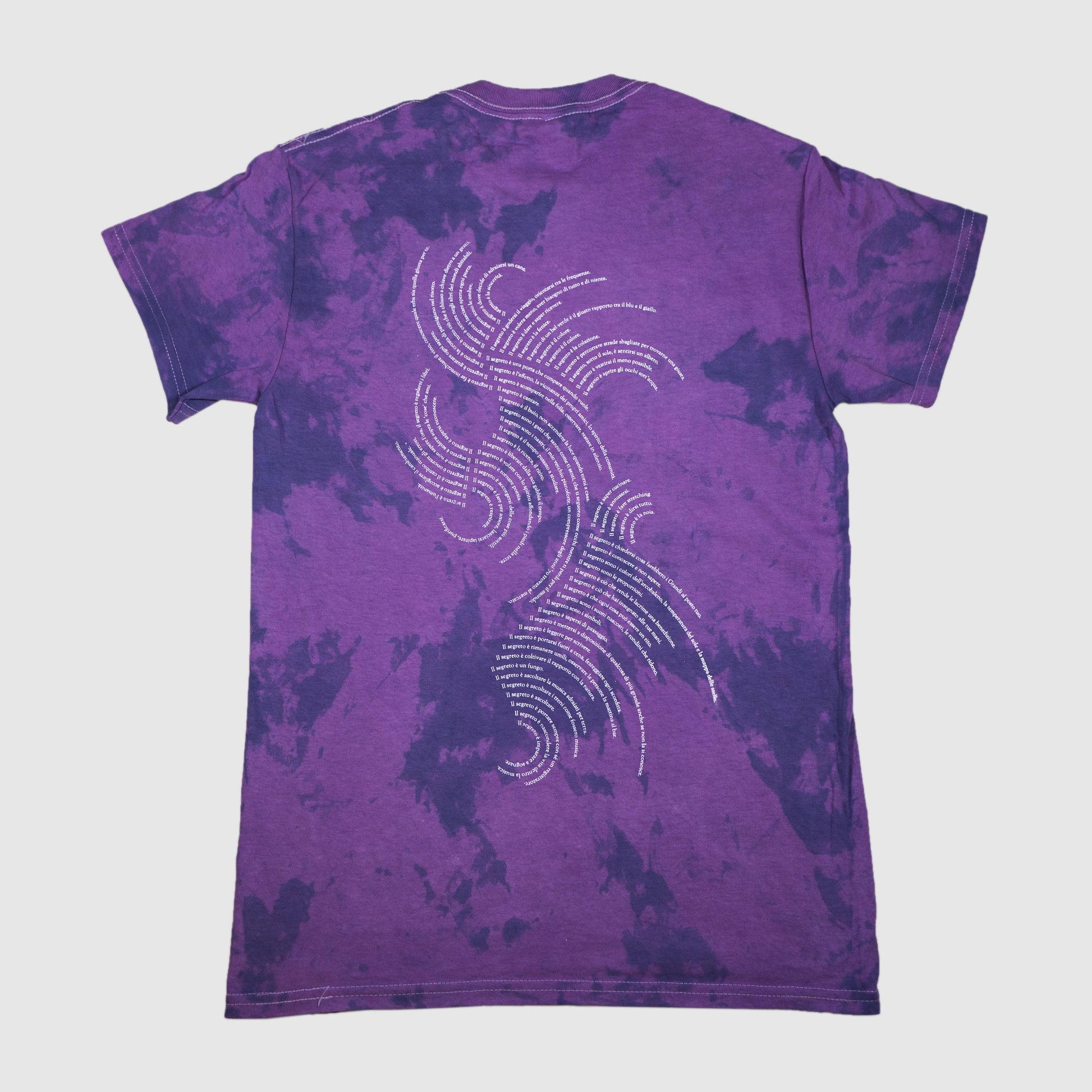 Hand-worked double-sided screen printing on Tie Dye dye |