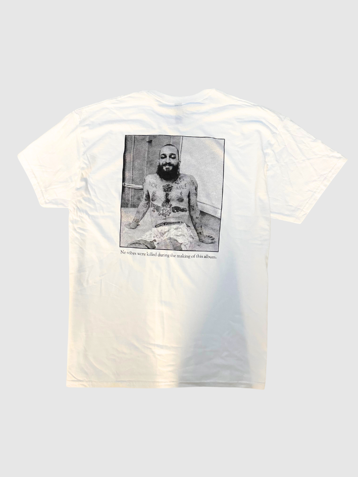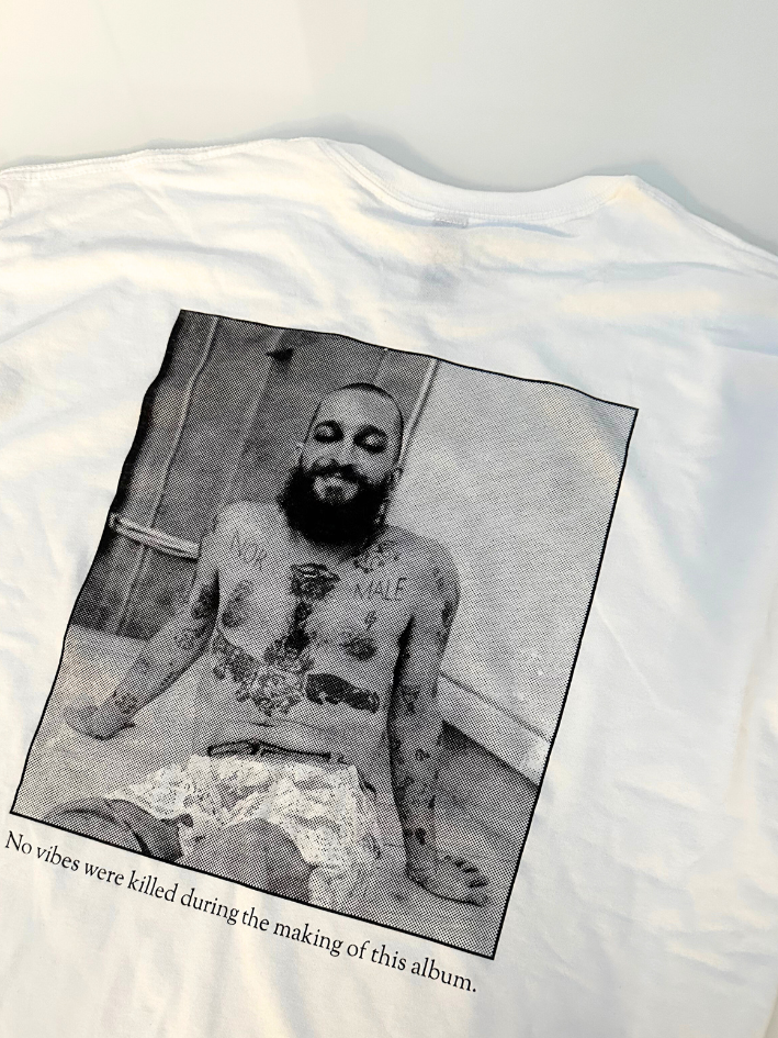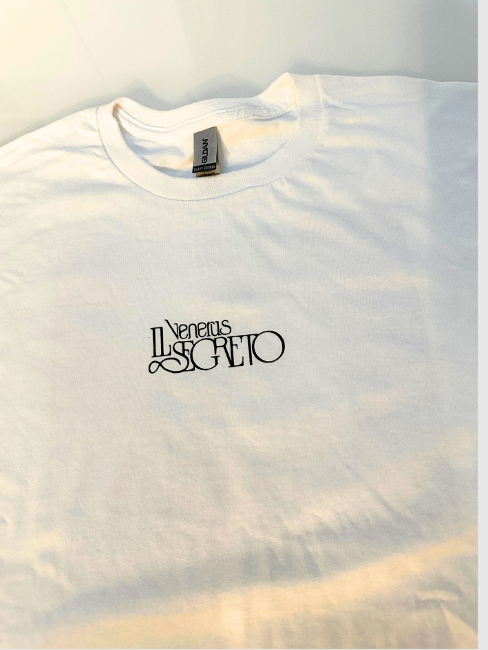 T-shirt "Vibe" con stampa al contrario, di Venerus, realizzata per l'album Il Segreto.